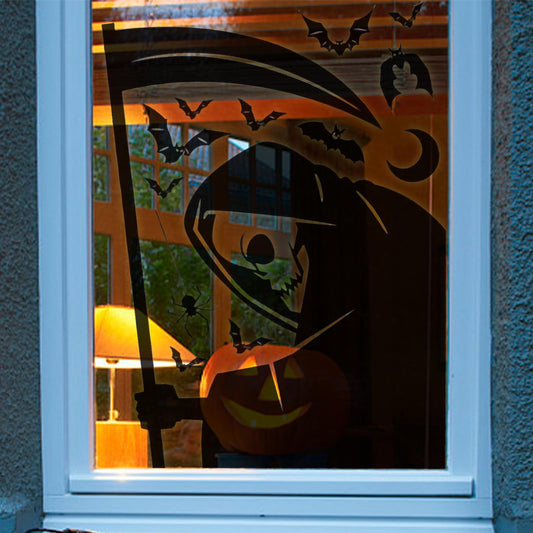 4 Sheet Halloween Window Clings Sticker, Removable Halloween Party Decorations Giant Spooky Witch Pumpkin Monster Window Silhouette Non-stick Electrostatic Window Clings Decals
