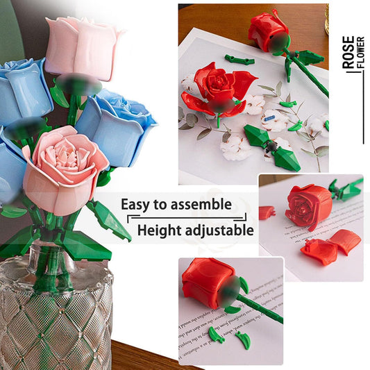 3 Color Rose Flowers Bouquet Building Kit Artificial Flowers for Home Decoration, Bricks Toy Birthday Thanksgiving, Christmas Gifts for Mom Grandma Him Her