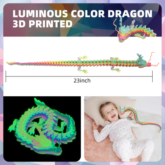 3D Printed Dragon, 3D Dragon,23 Inch 3D Printed Fidget Dragon Glow in The Dark, 3D Printed Articulated Dragon for Home Office Car Desk Decor Toys