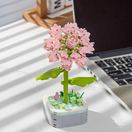 Flower Bouquet Building Set with Base, Pink Carnation Artificial Plant Flowers Building Blocks for Mother's Day gift, Birthday Gifts, Desktop Trinkets