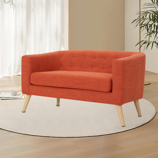 Loveseat Sofa, Mid Century Linen Fabric 2-Seat Couch Tufted Love Seat with Back Cushions and Tapered Wood Legs for Living Room, Bedroom and Small Space