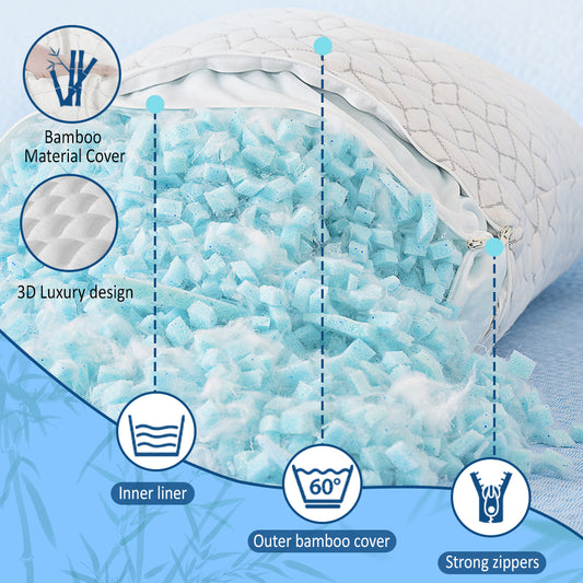 Maxky Home 1-Pack Gel Memory Foam Bed Pillow (20"x 26") for Side and Back Sleepers - Anti-Bacterial, Anti-Mite with Washable Removable Cover