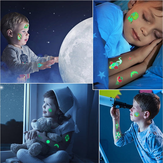 Luminous Tattoos For Kids, Animals Ocean Space Temporary Tattoo Stickers, Glow In The Dark Tattoos for Boys and Girls, Dinosaur Fake Tattoos More Party Makeup Gifts,5 Sheets