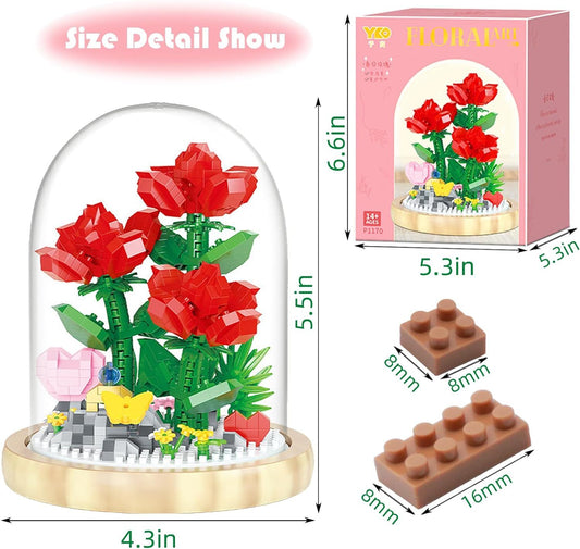 Flower Bouquet Building Kit, Mini Bricks Building Blocks Sets, Forever Decorated Flower with Dust Cover, Gifts for Christmas Gifts, Thanksgiving Gifts for Her Mom Women Girlfriends