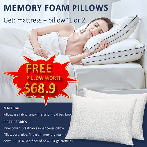 Free Pillows Included: 2-Bonus Memory Foam Pillows are included with the Queen Size Mattress, King Size Mattress,